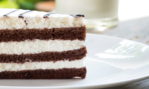- Eine Terrinenform mit Plastikfolie auskleiden und die Roulade in vier Rechteckige Stücke schneiden. Eine Roulade in die Terrine legen und leicht tränken. Das dunkle Schokoladenmousse zu einem Drittel einfüllen. Eine weitere Roulade auflegen und tränken. Das weiße Mousse zu einem Drittel einfüllen und wieder eine Roulade auflegen. Tränken und wieder das dunkle Mousse zu einem Drittel einfüllen. Mit der restlichen Roulade abdecken und etwa 5 Stunden im Kühlschrank kaltstellen.