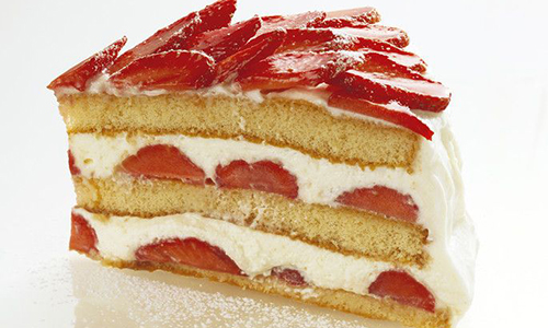 - Slice remaining strawberries, arranging them on the cake in roof-tile fashion. Dust with powdered sugar if desired and serve.