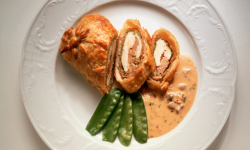 Strudel de Pollo con Salsa de Champiñones y Cognac