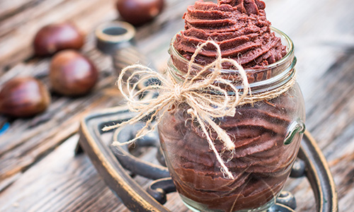 - Incorporez la purée de châtaignes. Incorporez soigneusement à la crème fouettée à la fin. Placez la mousse dans un plat adapté, couvrez et laissez refroidir pendant 2 heures au réfrigérateur.